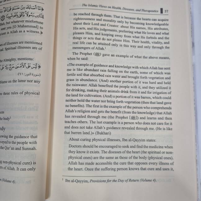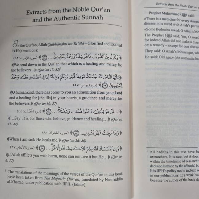 • It also discusses the Qur’ānic verses related to health, sickness, cure, as well as the spiritual & physical remedies recommended by the Prophet (ﷺ) in light of modern knowledge.